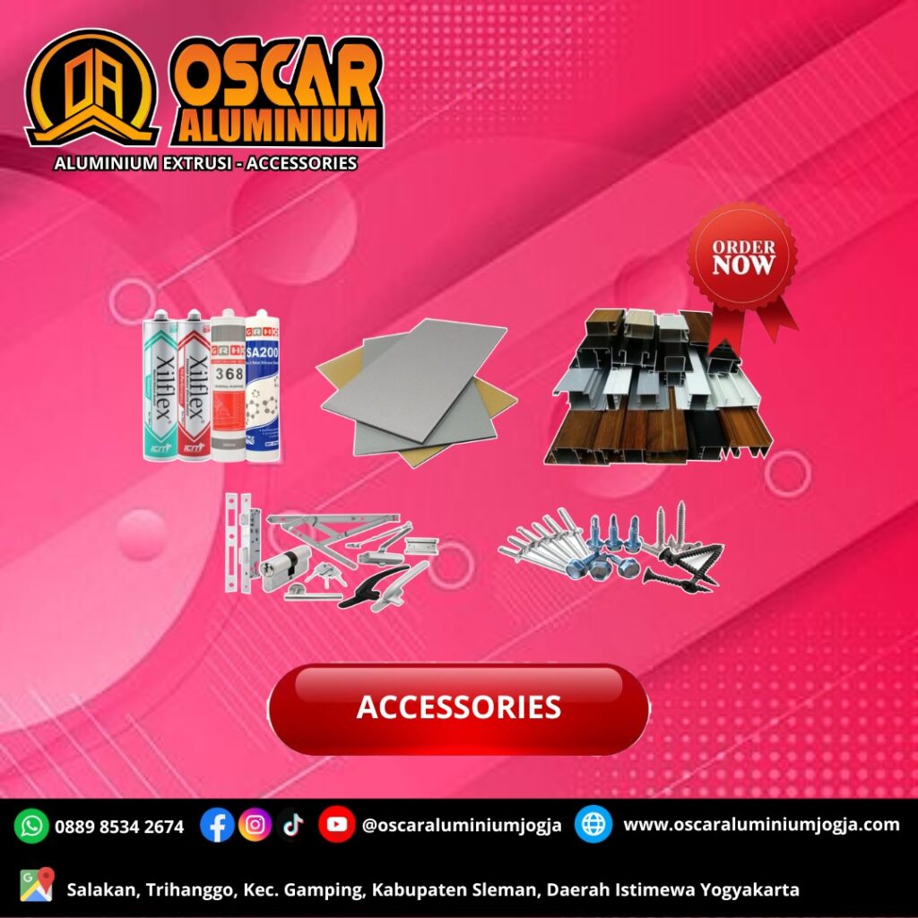 Oscar Aluminium Jogja adalah Aluminium Exturi – Accessories terlengkap dan terbaik di Jogja. Kami menjual bahan aluminium kusen dan komoditi lebih lengkapnya lagi kami juga menjual accessories aluminium dengan segala produk Oscar Aluminium Jogja.